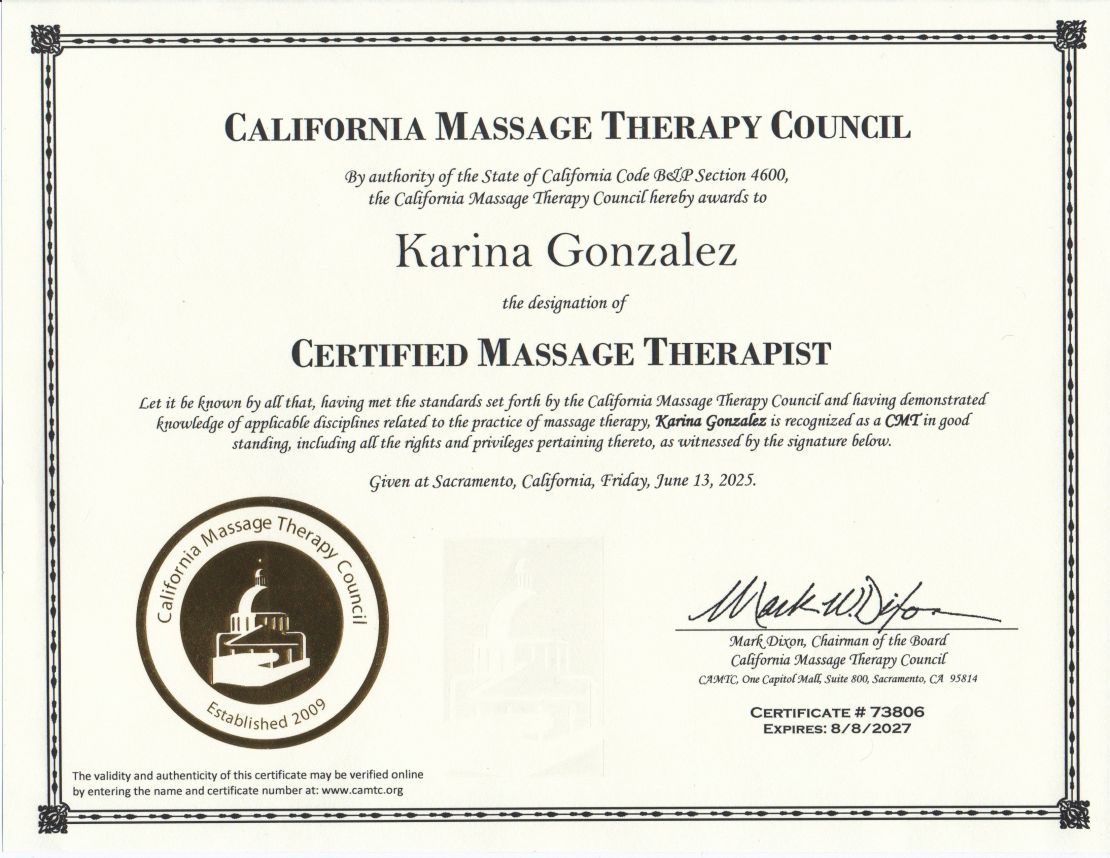 You're probably here because you've been referred to me for bodywork, and I can confidently assure you that you are in good hands, my friend :) My name is Karina Gonzalez and I provide professional in-home body therapy sessions near and around Los Angeles County, CA.